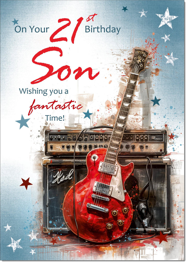 Son 21st Birthday Card Age 21 Guitar