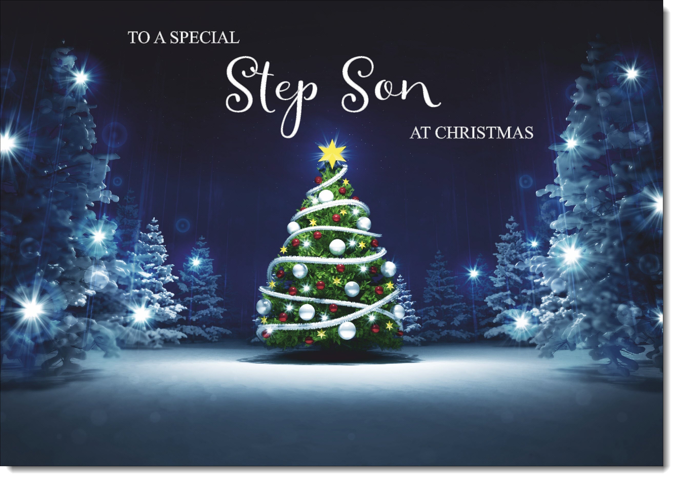 Stepson Christmas Card Christmas Tree Lights in Dark Sky
