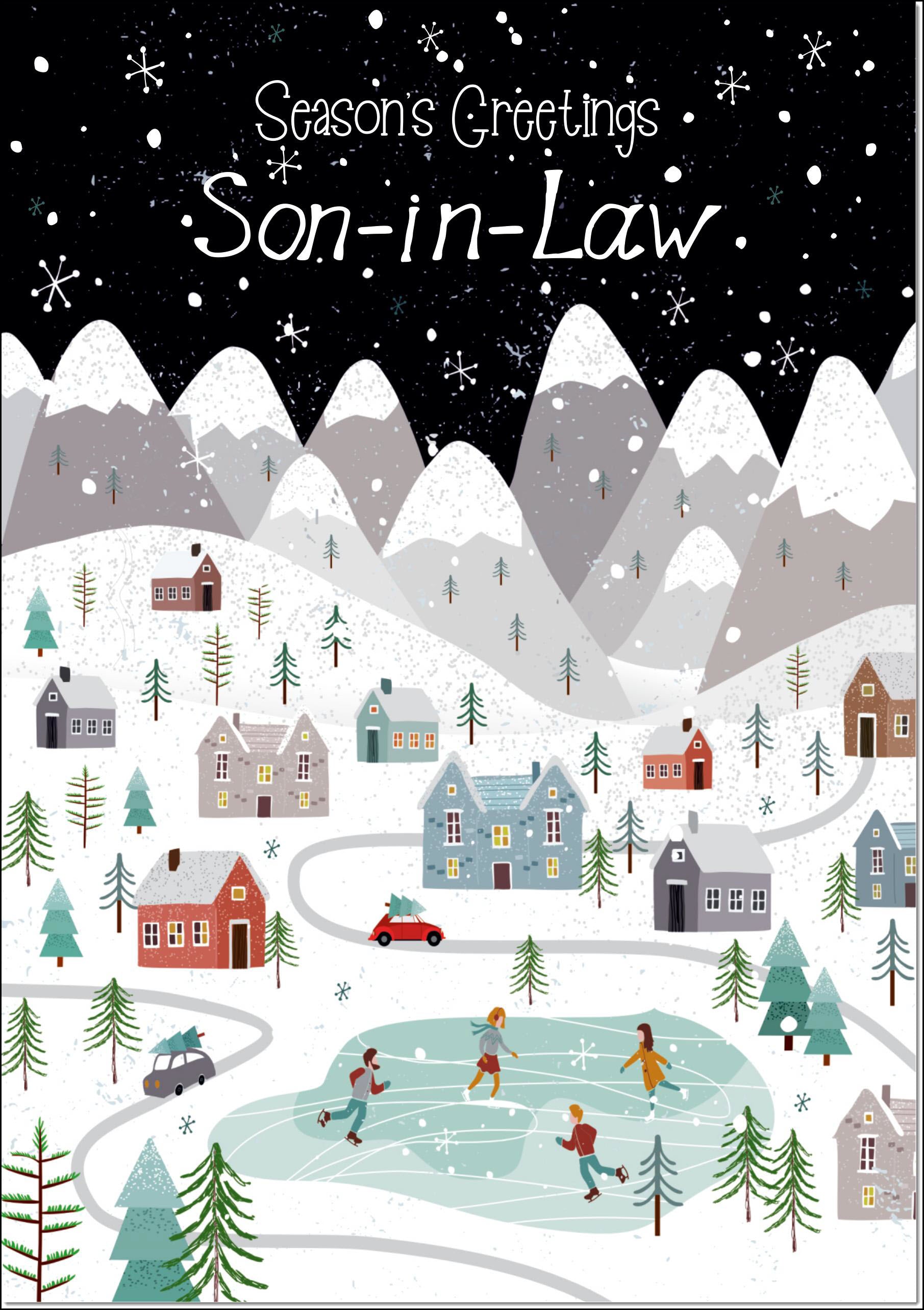 Son-in-Law Christmas Card Mountain Scene In Snowy Village
