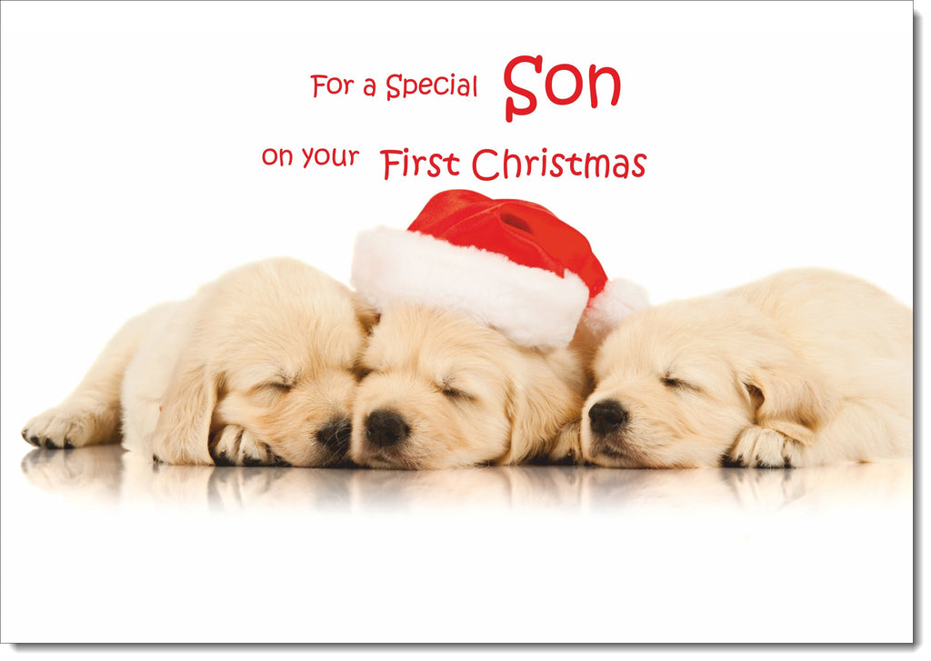Sons 1st Christmas Card Christmas Golden Retriever Puppies