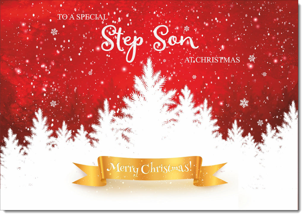 Stepson Christmas Card Christmas Tree and Parcels