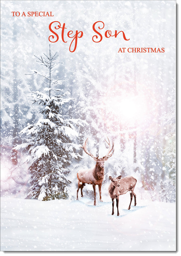 Son-in-Law Christmas Card Stag and Doe in Snowy Forest