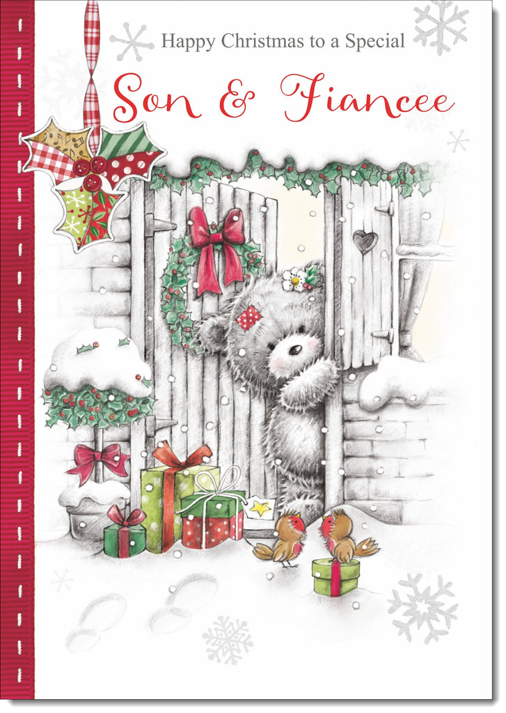 Son & Fiancee Christmas Card Grey Bear in Snow