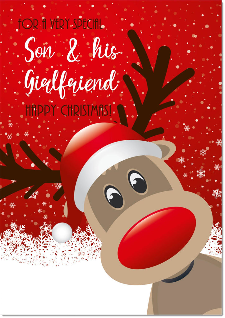 Son & Girlfriend Christmas Card Rudolph in Snow