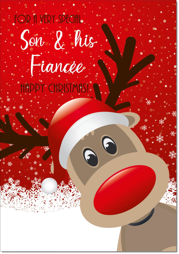Son & Fiancee Christmas Card Rudolph in Snow