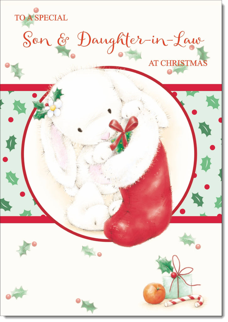 Son & Daughter-in-Law Christmas Card Cute Rabbit with Stocking