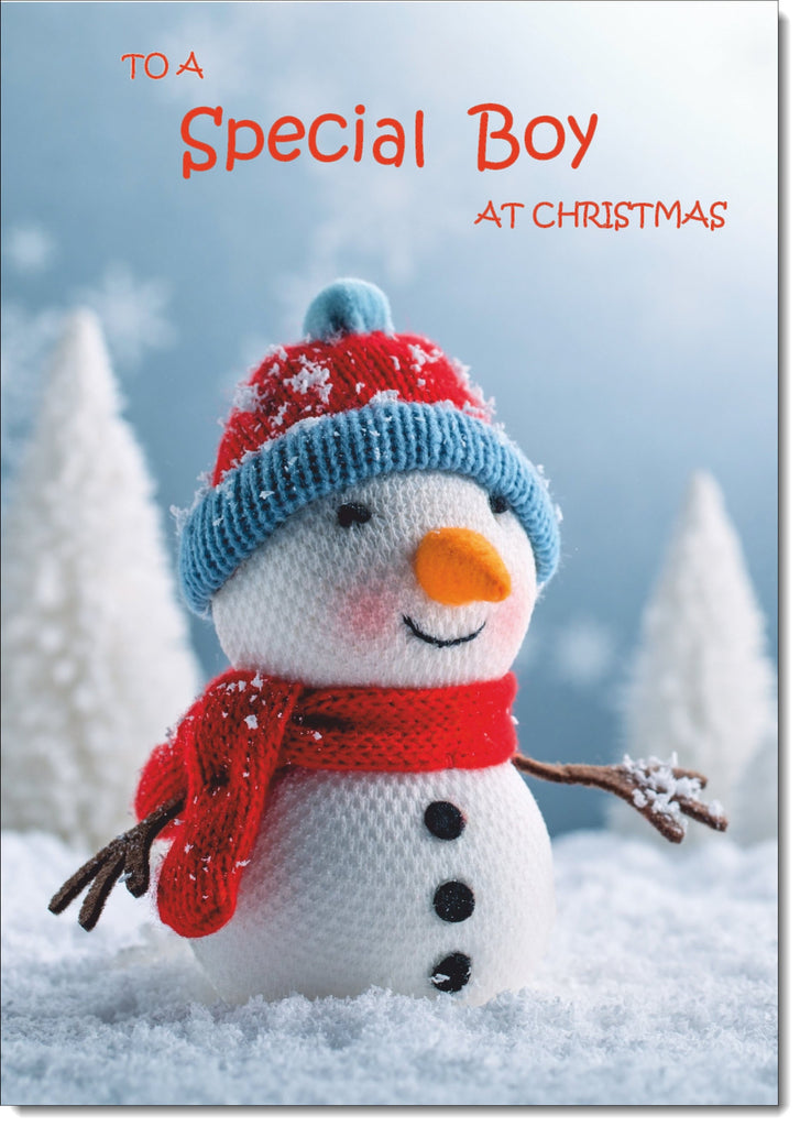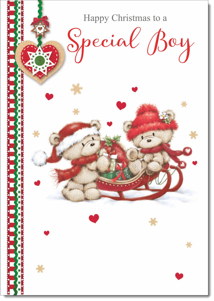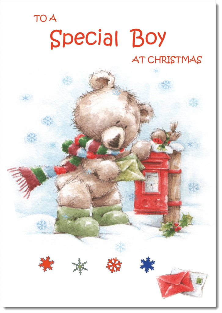 Special Boy Christmas Card Teddy Bear With Red Scarf
