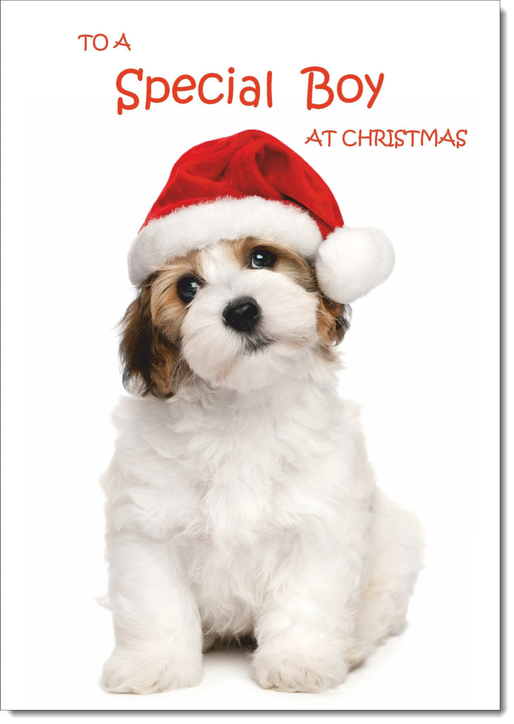 Special Boy Christmas Card Cute Santa Paws Puppy Dog Pet