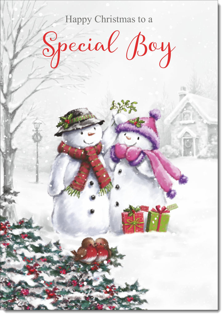 Special Boy Christmas Card Cute Couple on a Snowy Night