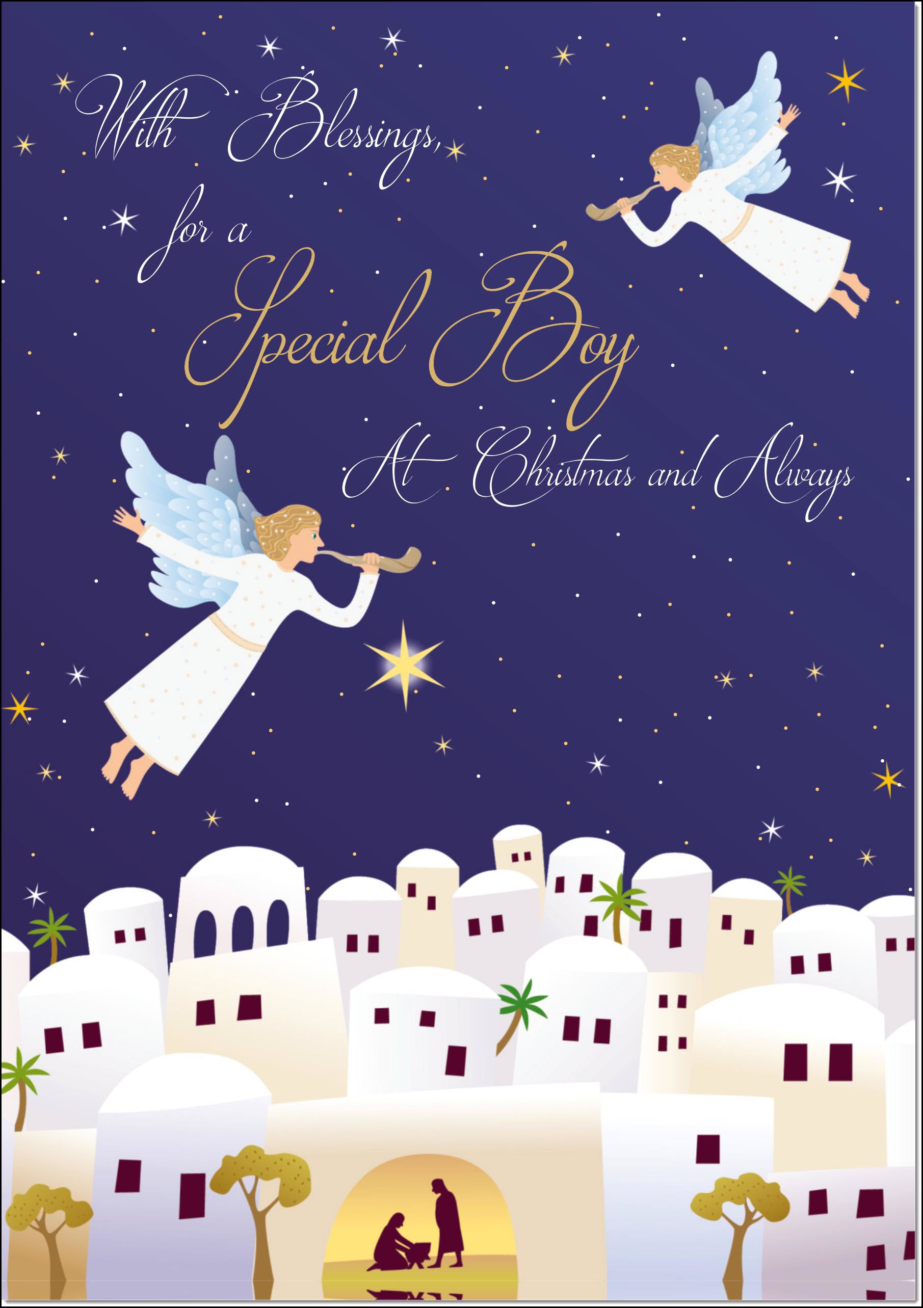 Special Boy Christmas Card Nativity Scene Angels Bethlehem