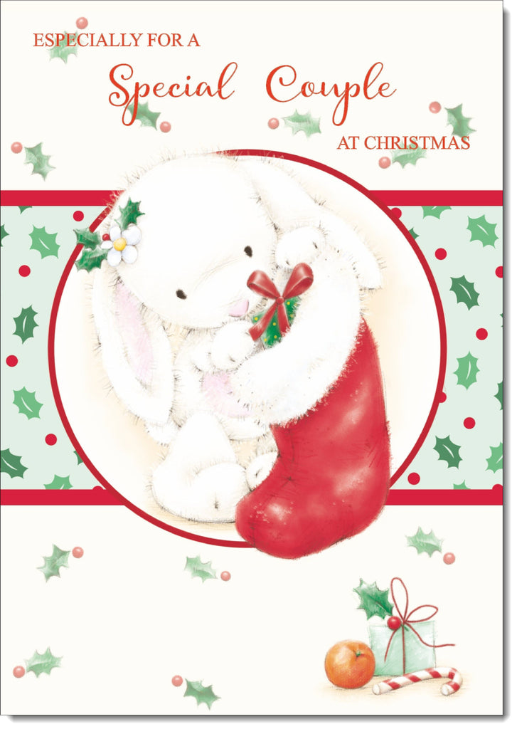 Special Couple Christmas Card Cute Rabbit with Stocking