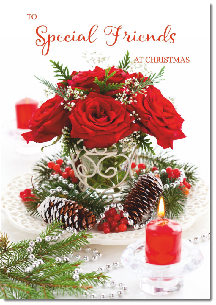 Special Friends Christmas Card Red Roses Christmas Arrangement