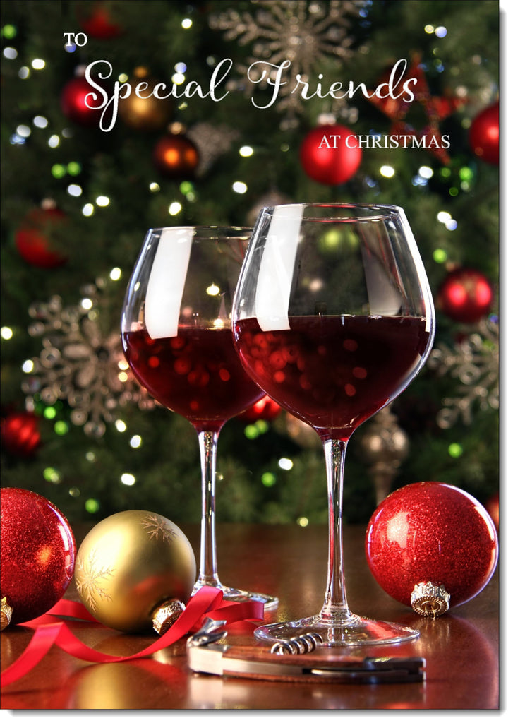 Special Friends Christmas Card Red Wine Glasses