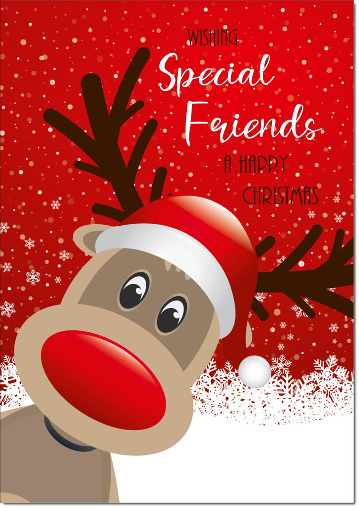 Special Friends Christmas Card Rudolph on Red Background