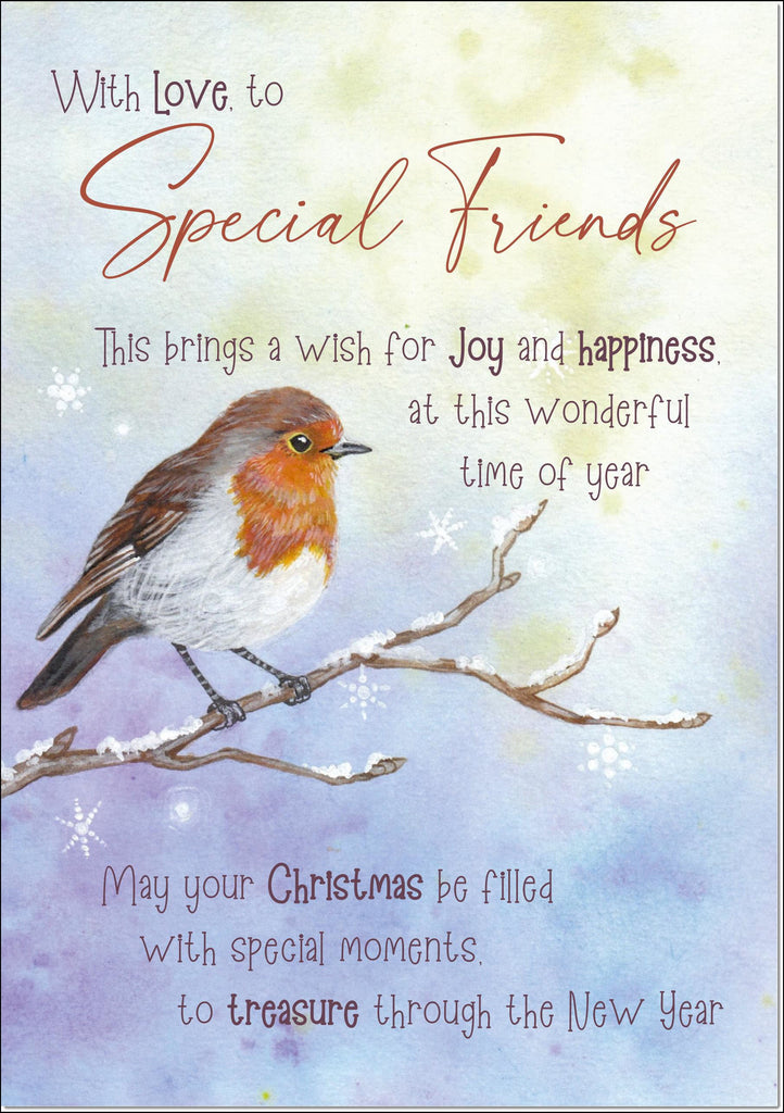 Special Friends Christmas Card Robin in Winter Scene