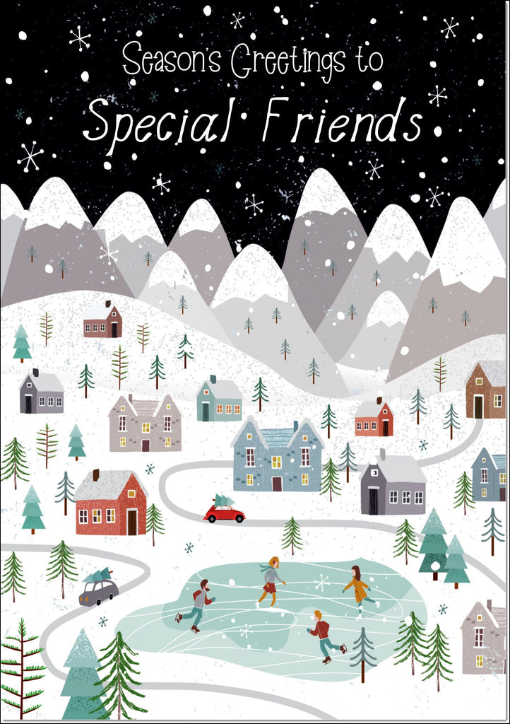 Special Friends Christmas Card Snowy Street Scene