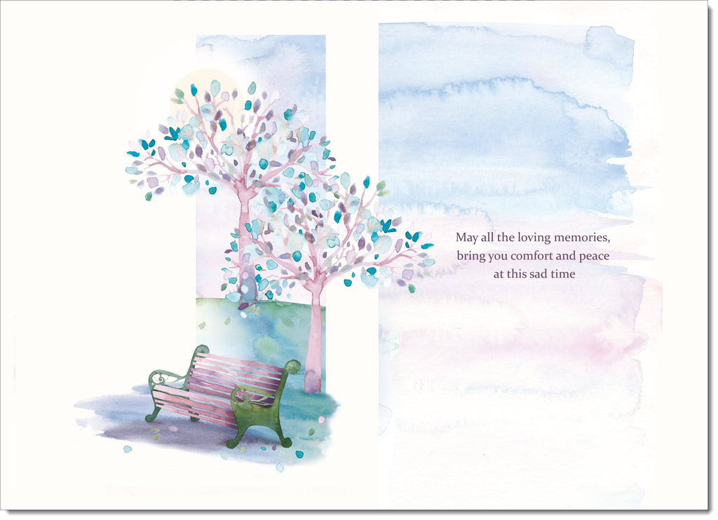 Loss Of Husband Sympathy Condolence Bereavement Card Watercolour Bench