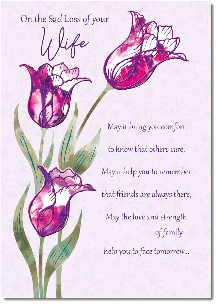 Loss Of Wife Sympathy Condolence Bereavement Card Purple Tulips