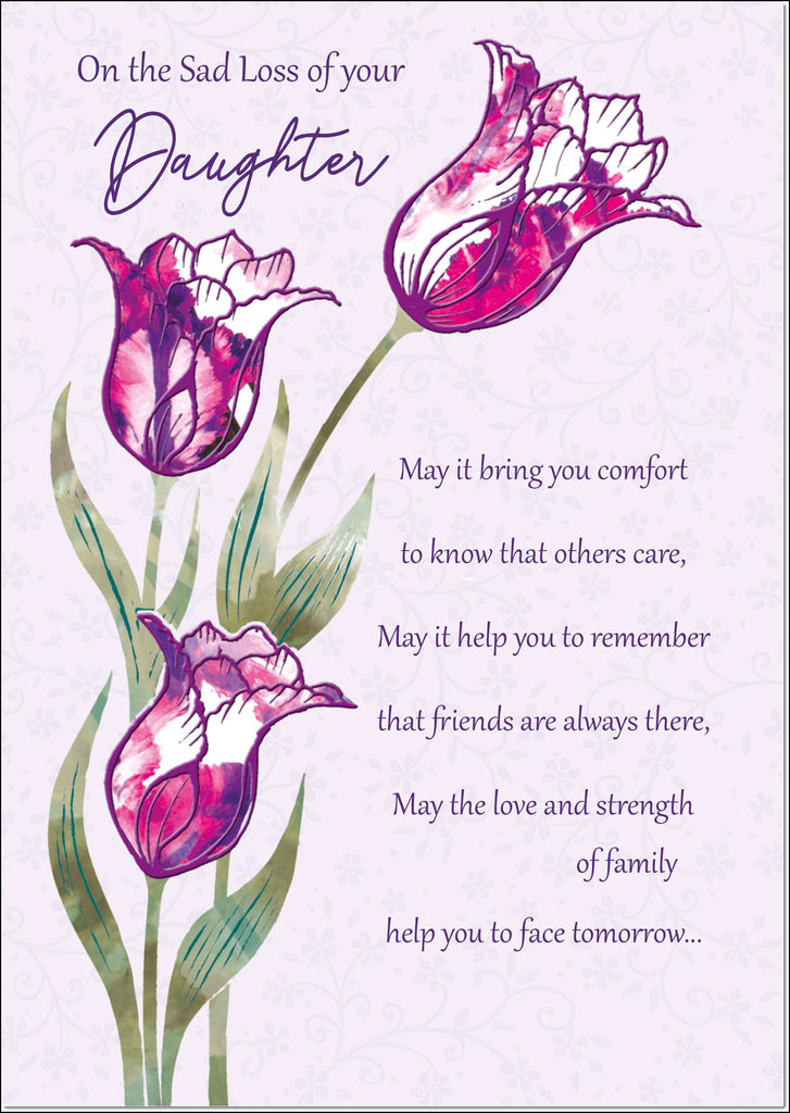 Loss Of Daughter Sympathy Condolence Bereavement Card Purple Tulips
