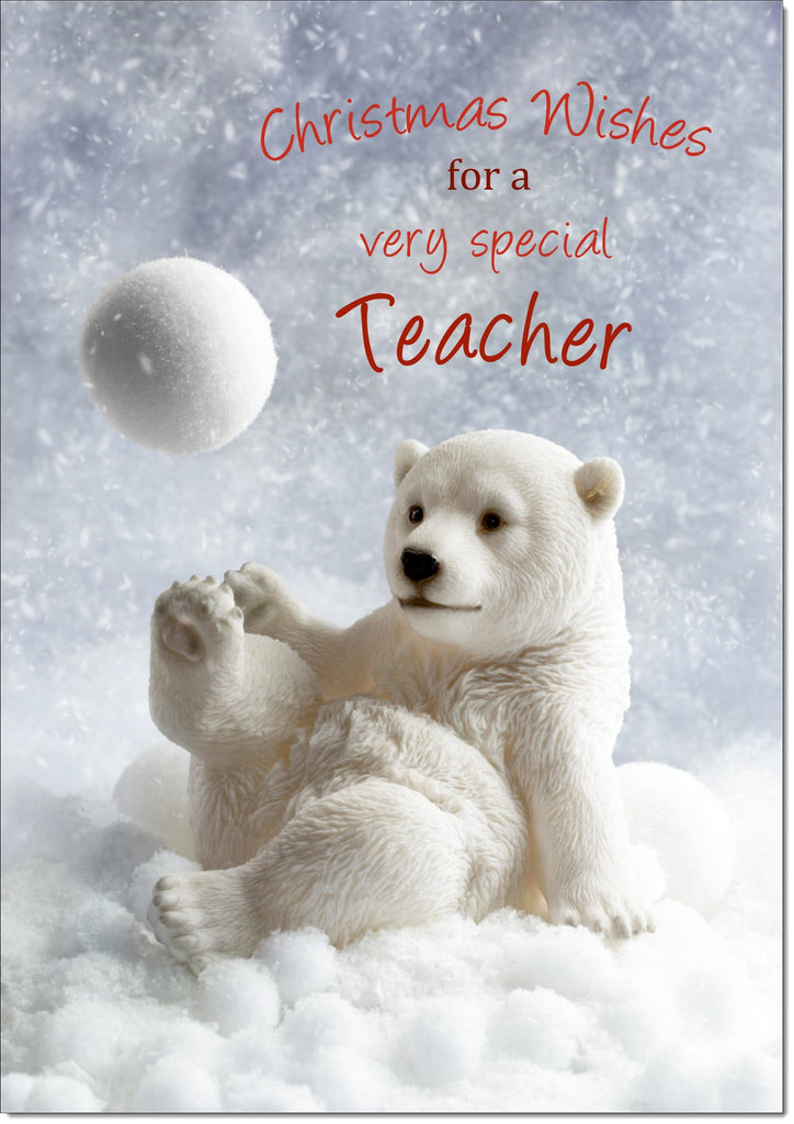 Teacher Christmas Card Polar Bear and Snowball