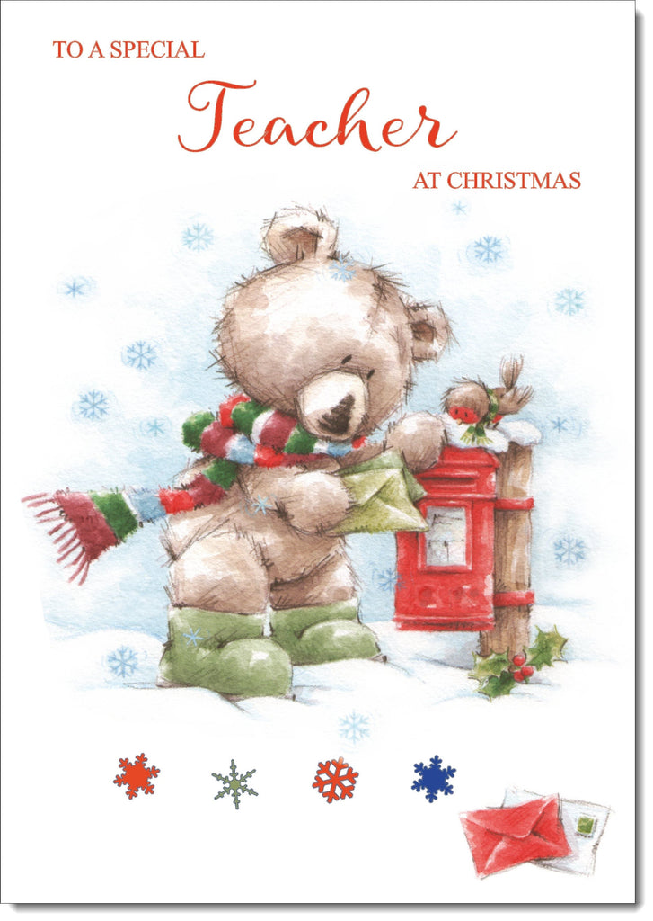 Teacher Christmas Card Cute Bear at Post Box
