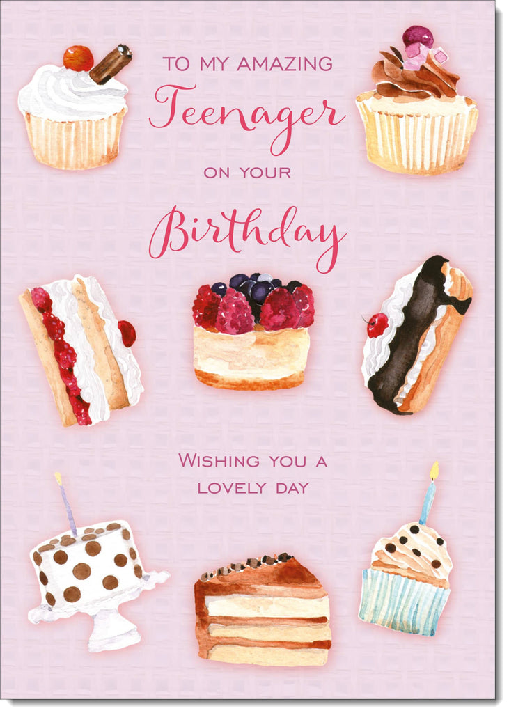 Teenager Birthday Card for Girl Pastel Pink Birthday Cake