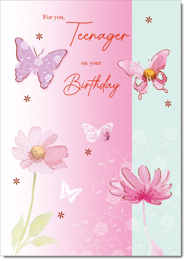 Teenager Birthday Card for Girl Flowers and Butterflies