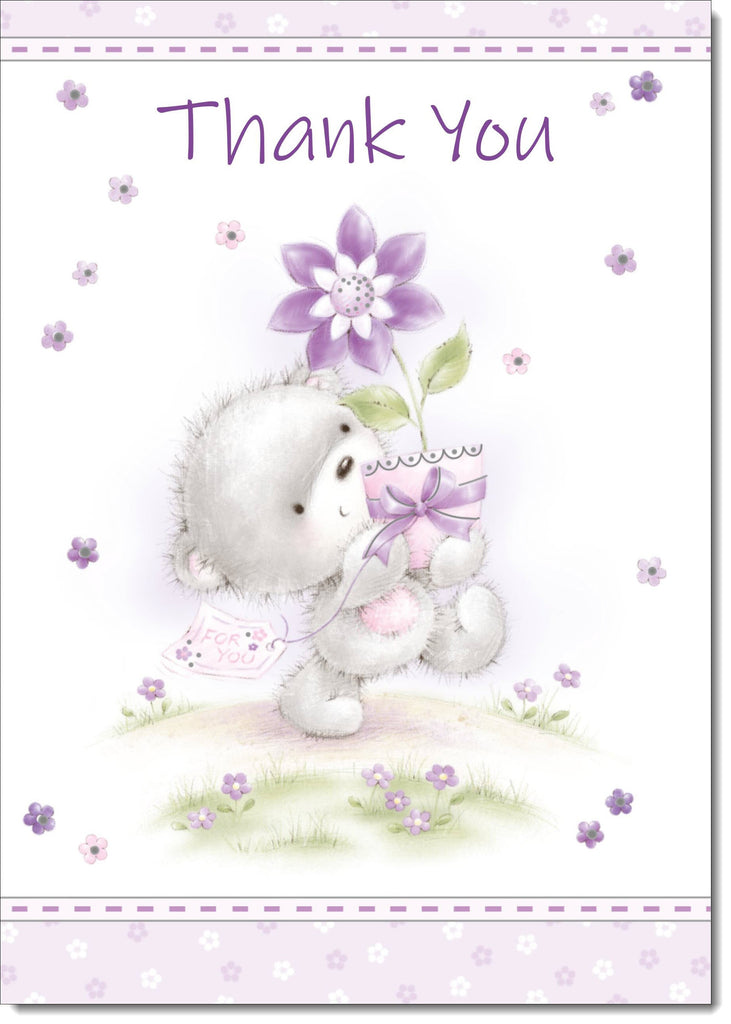 Thank You Card Teddy and Flower