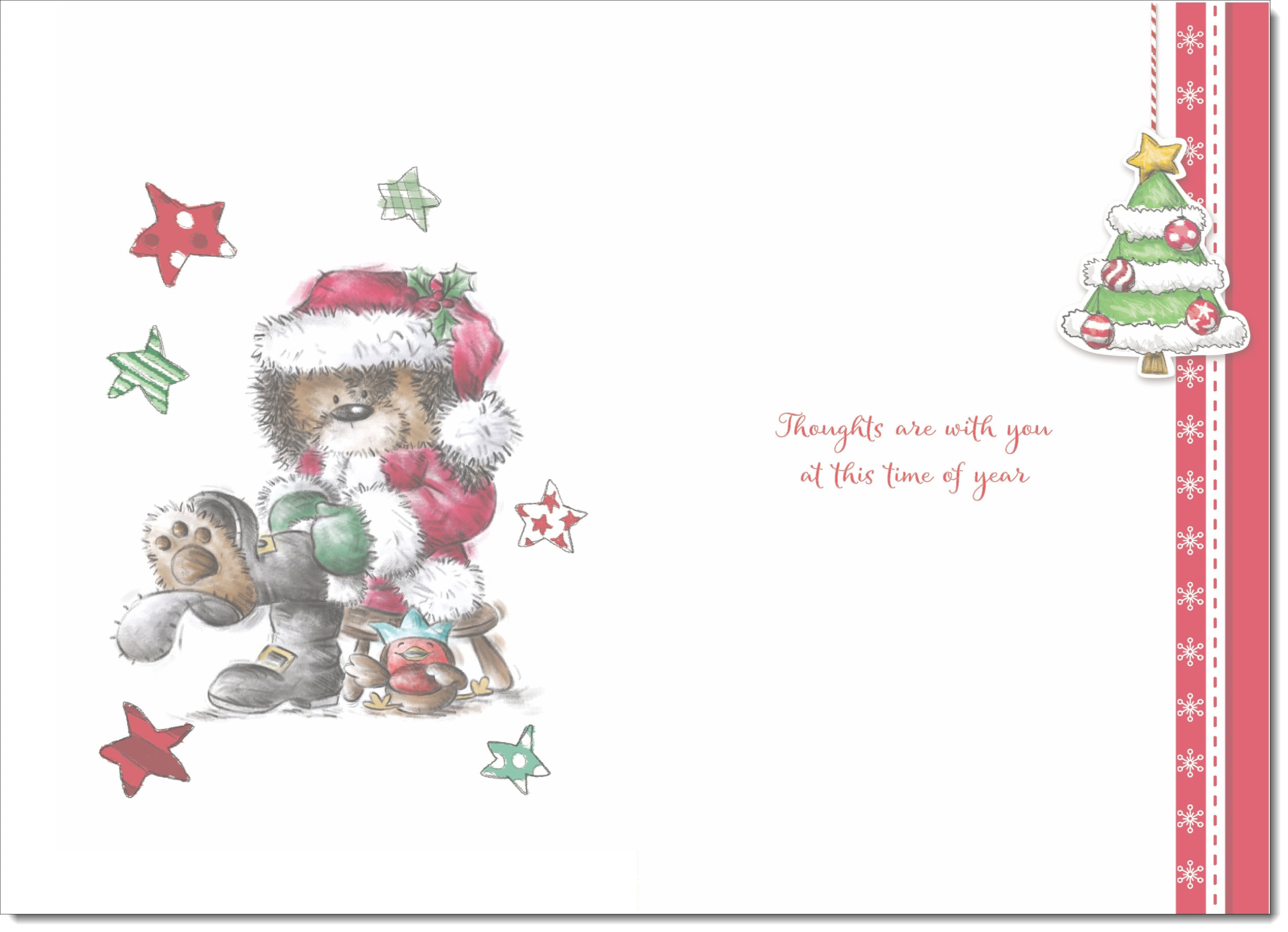 Thinking Of You Christmas Card Funny Santa Bear and Broken Boot