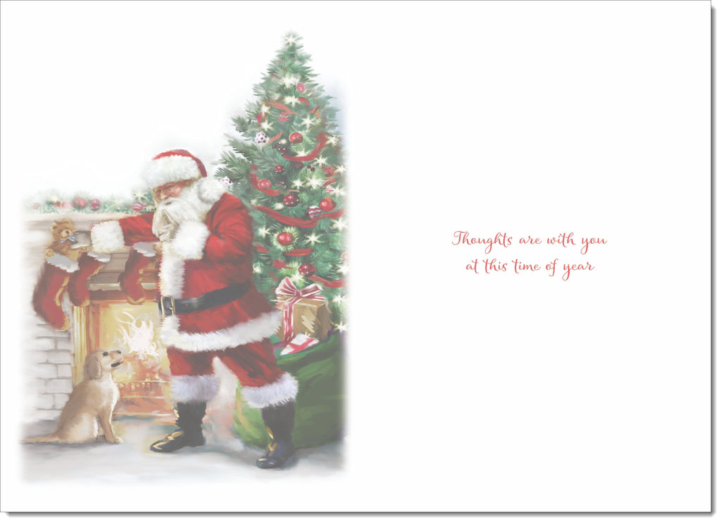 Thinking Of You Christmas Card Santa by Christmas Tree