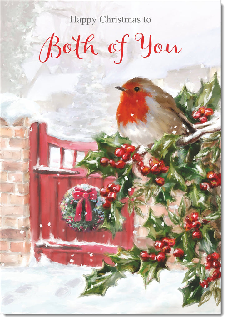 To Both of You Christmas Card Robin on Holly Tree