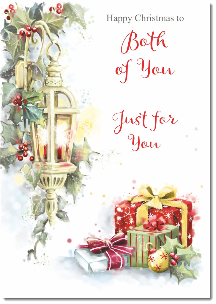 To Both of You Christmas Card Red Lantern & Christmas Presents