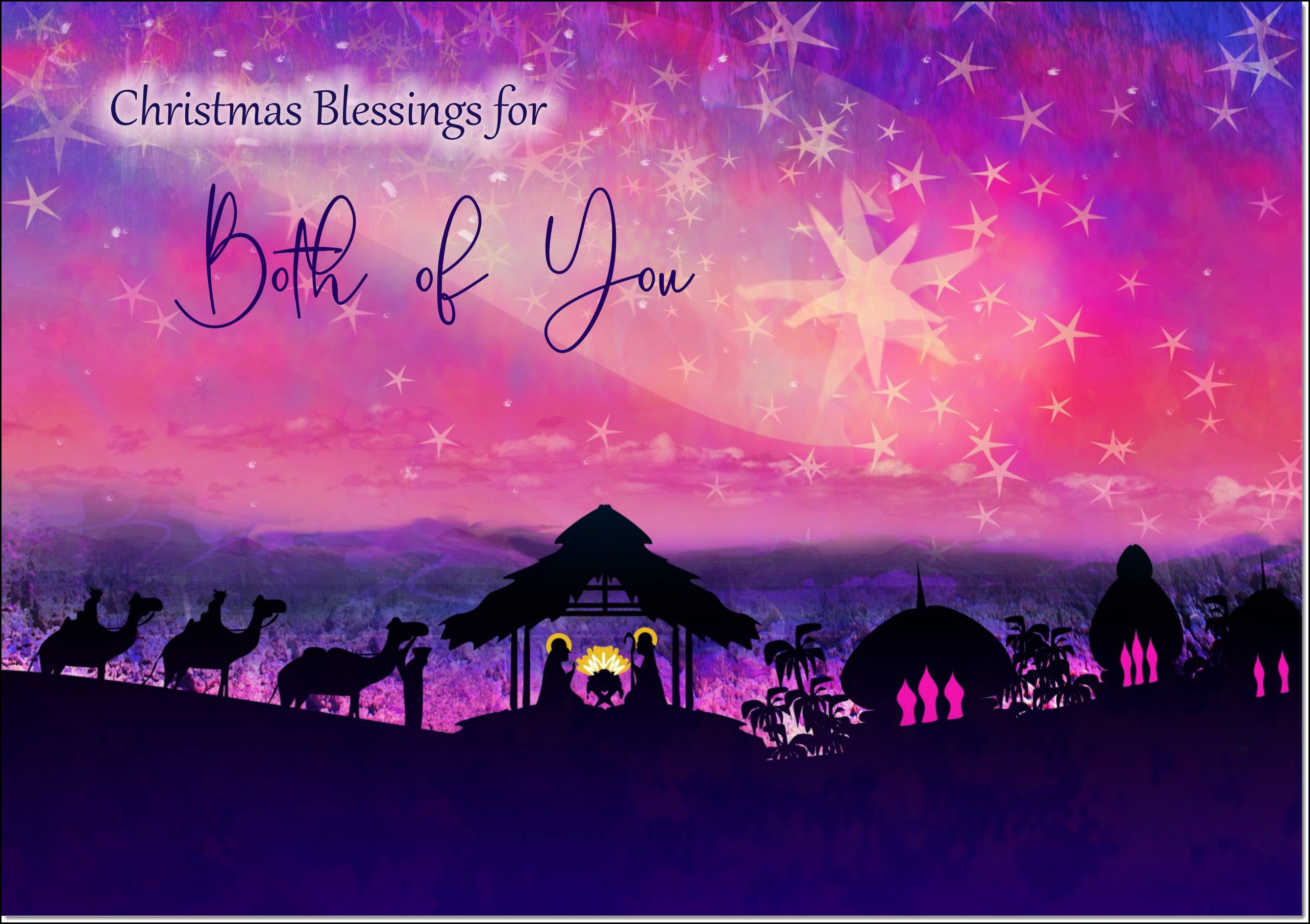 To Both of You Christmas Card Nativity Scene Evening Watercolour