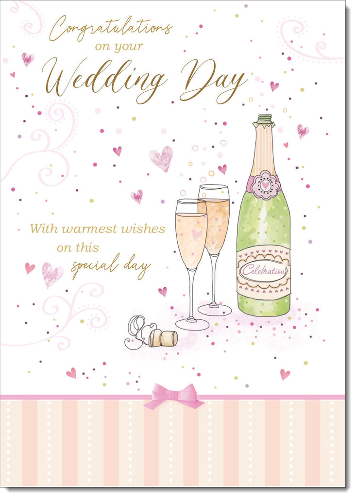 Wedding Day Card Cute Teddy Couple with Ribbons