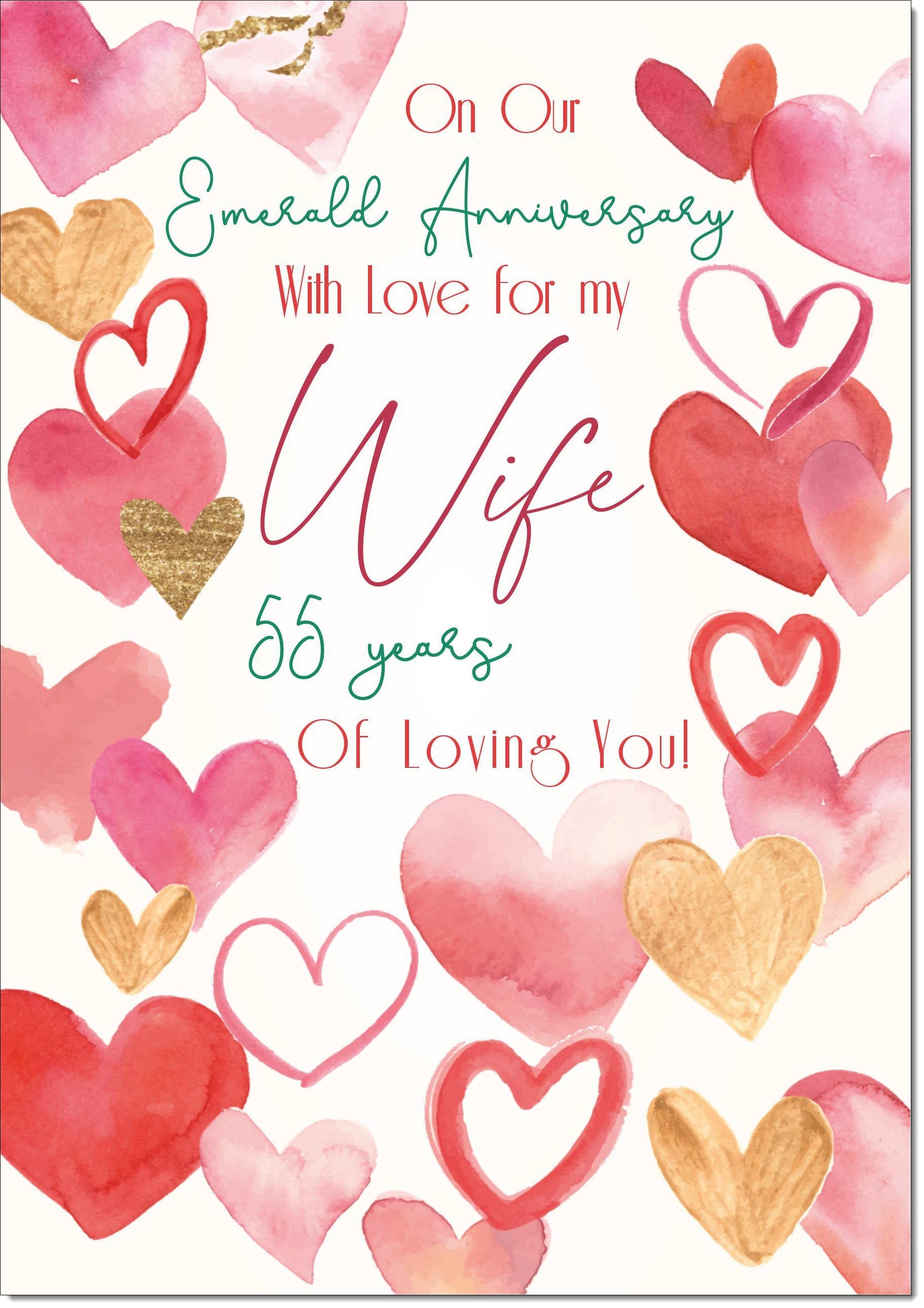 Wife Emerald 55th Wedding Anniversary Card Love Hearts