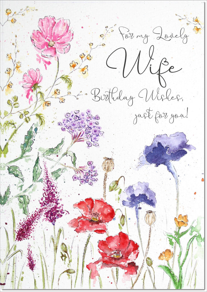 Wife 50th Birthday Card Age 50 Poppies and Blue Butterflies