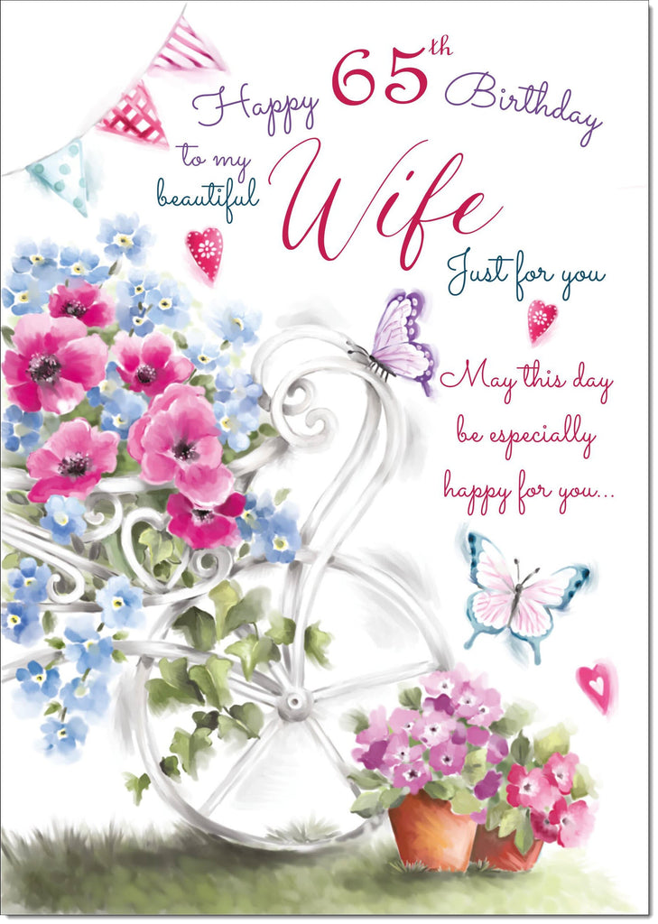 Wife 65th Birthday Card Age 65 Garden Wheelbarrow Bouquet