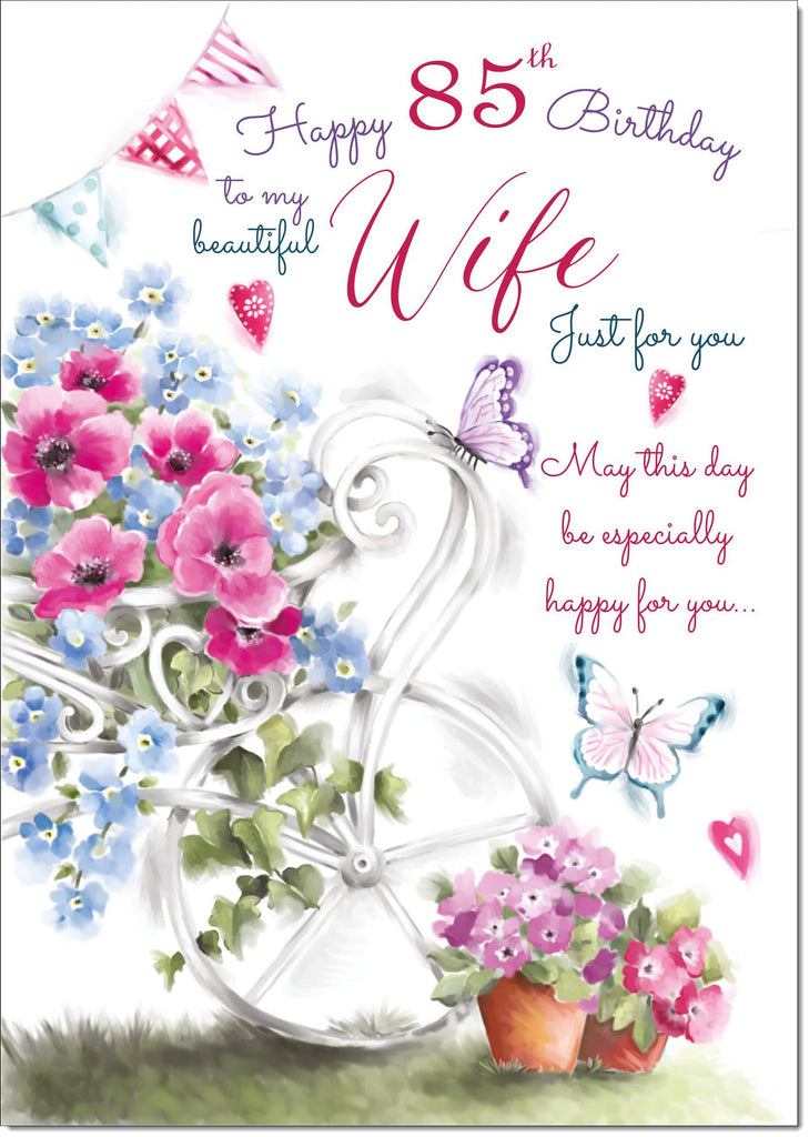 Wife 85th Birthday Card Age 85 Garden Wheelbarrow Bouquet
