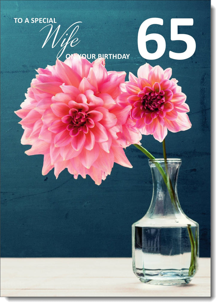 Wife 65th Birthday Card Age 65 Large Pink Flowers