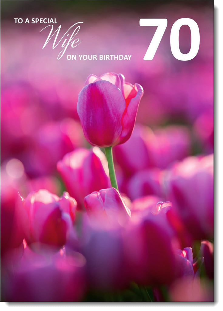 Wife 70th Birthday Card Age 70 Pink Tulip Field