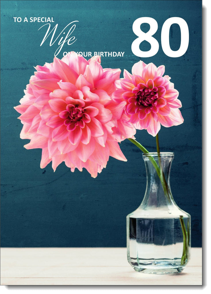 Wife 80th Birthday Card Age 80 Large Pink Flowers