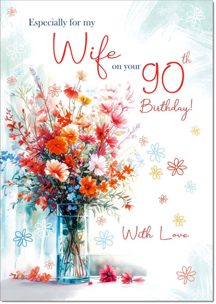 Wife 90th Birthday Card Age 90 Bright Bouquet