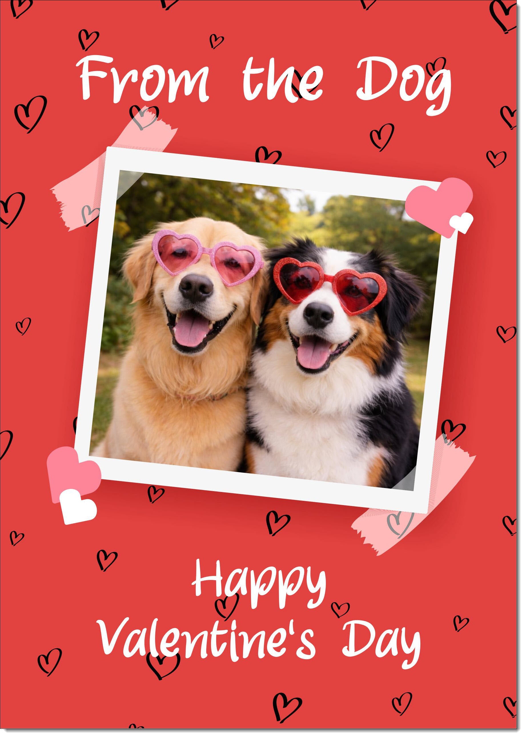 Valentines Day Card to From the Cat 2 Dogs with Heart Glasses