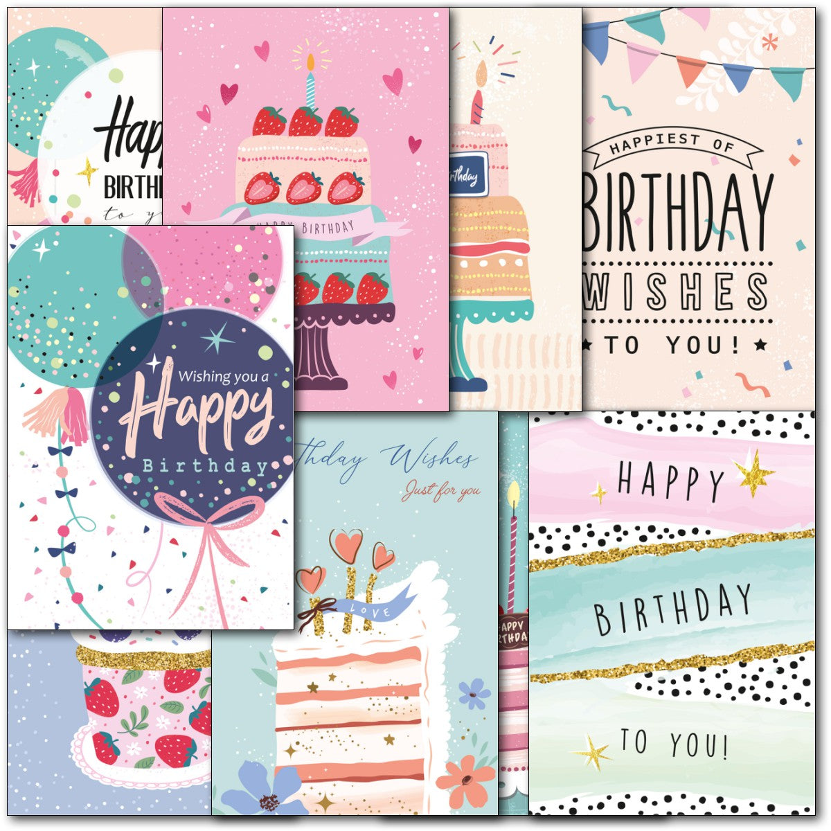 Pack of 60 Mixed C50 Small Pastel Happy Birthday Cards