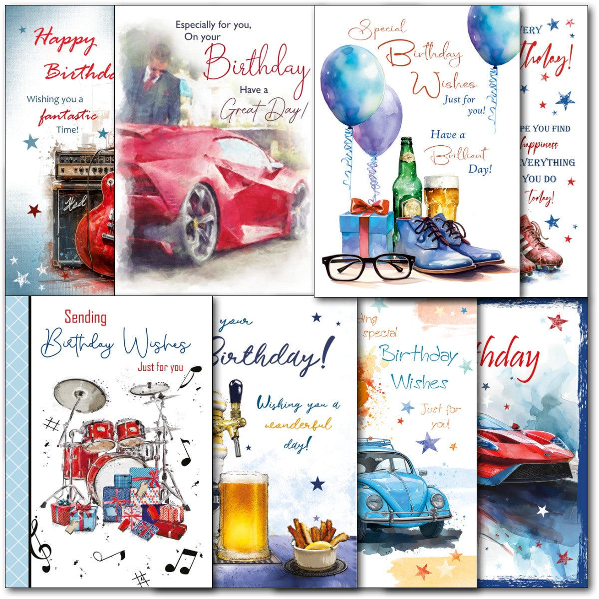 Pack of 60 Mixed C50 Small Contempory Male Happy Birthday Cards