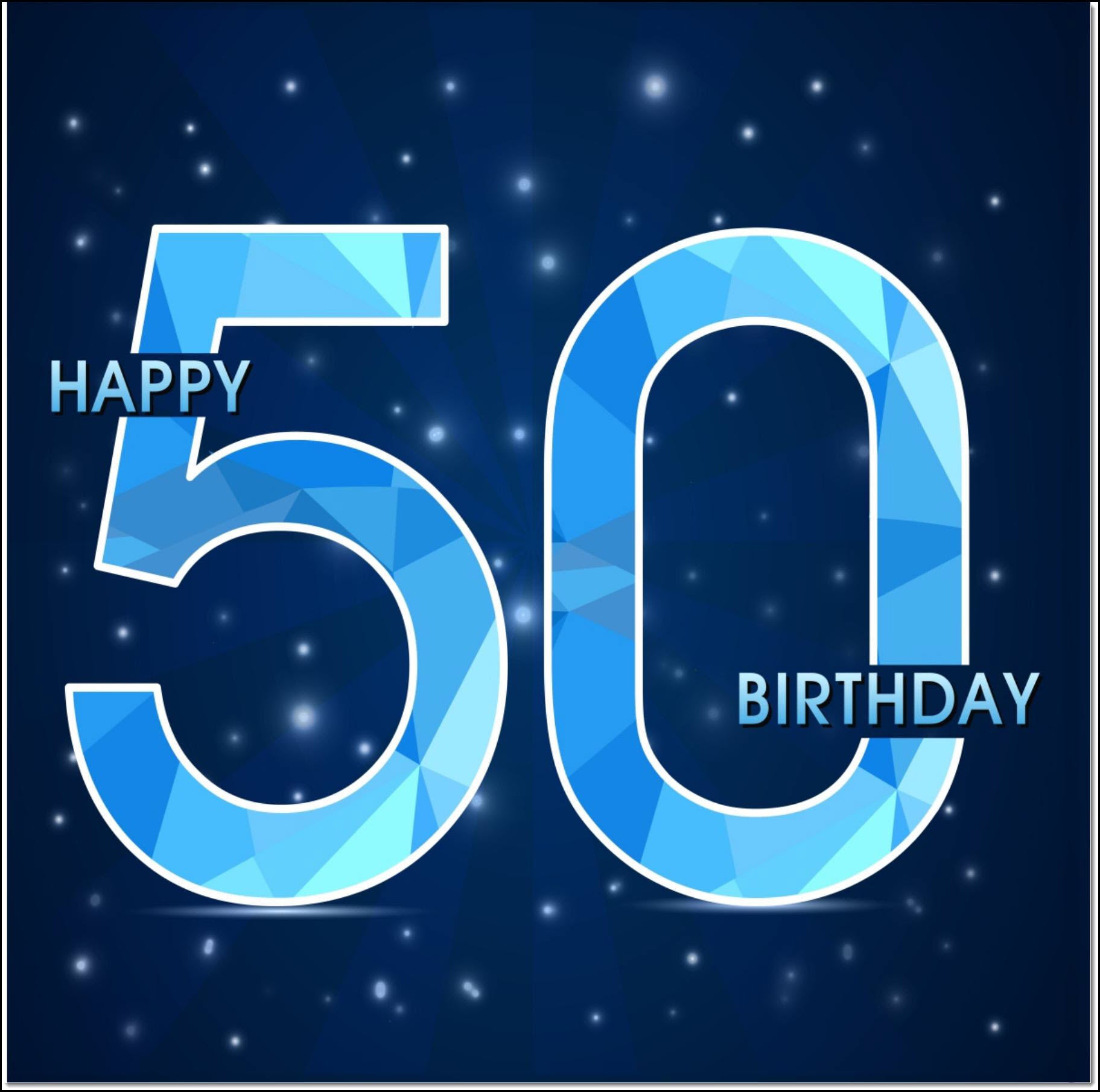 50th Birthday Card Age 50 for Him Blue Sparkle