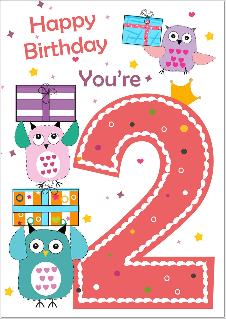 2nd Birthday Card Age 2 for Girl Owls with Presents