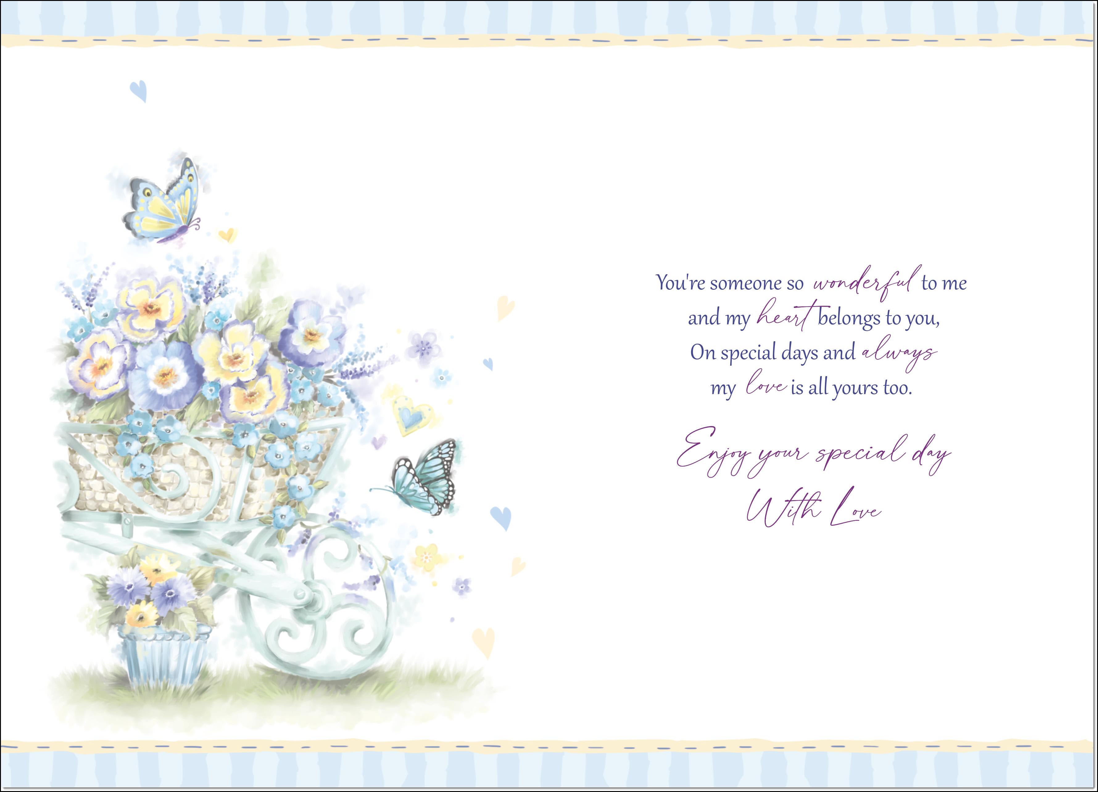 One I Love Birthday Card for Her Floral Wheelbarrow
