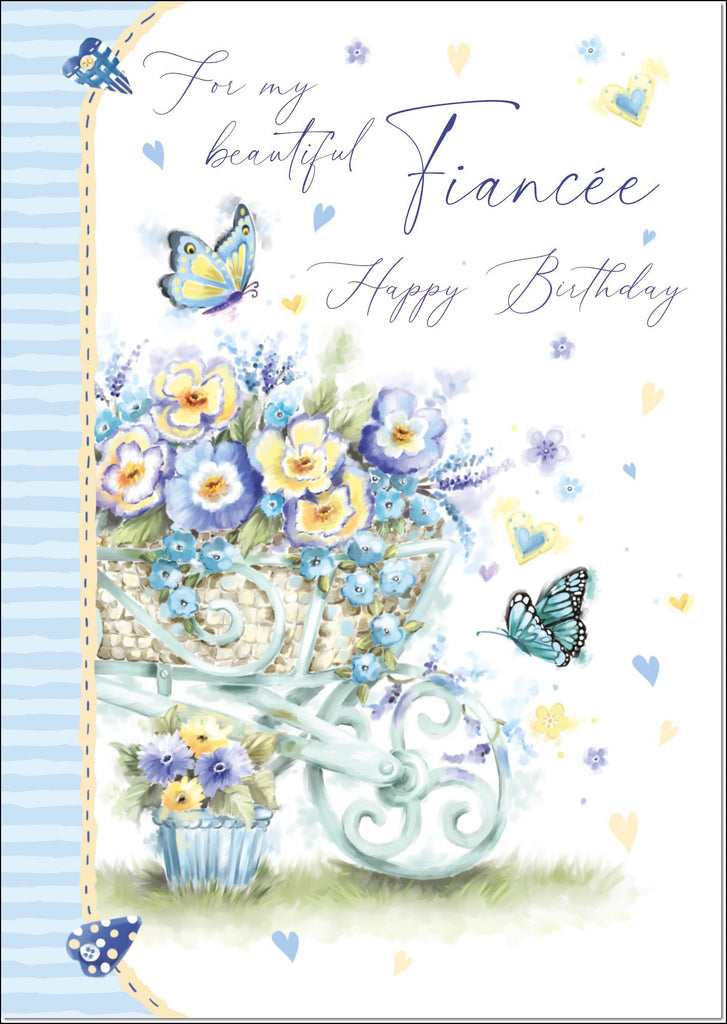 Fiancee Birthday Card Floral Wheelbarrow
