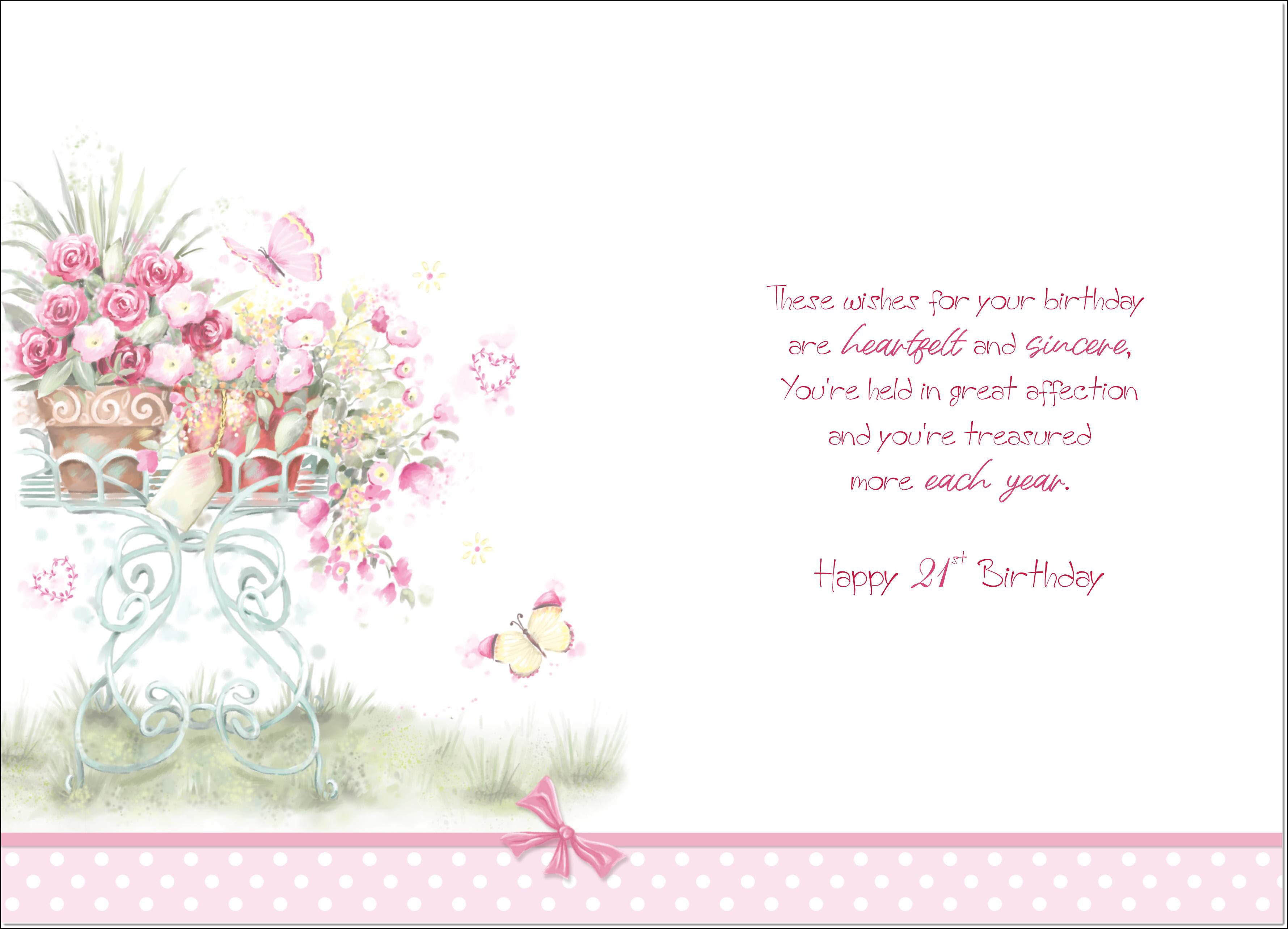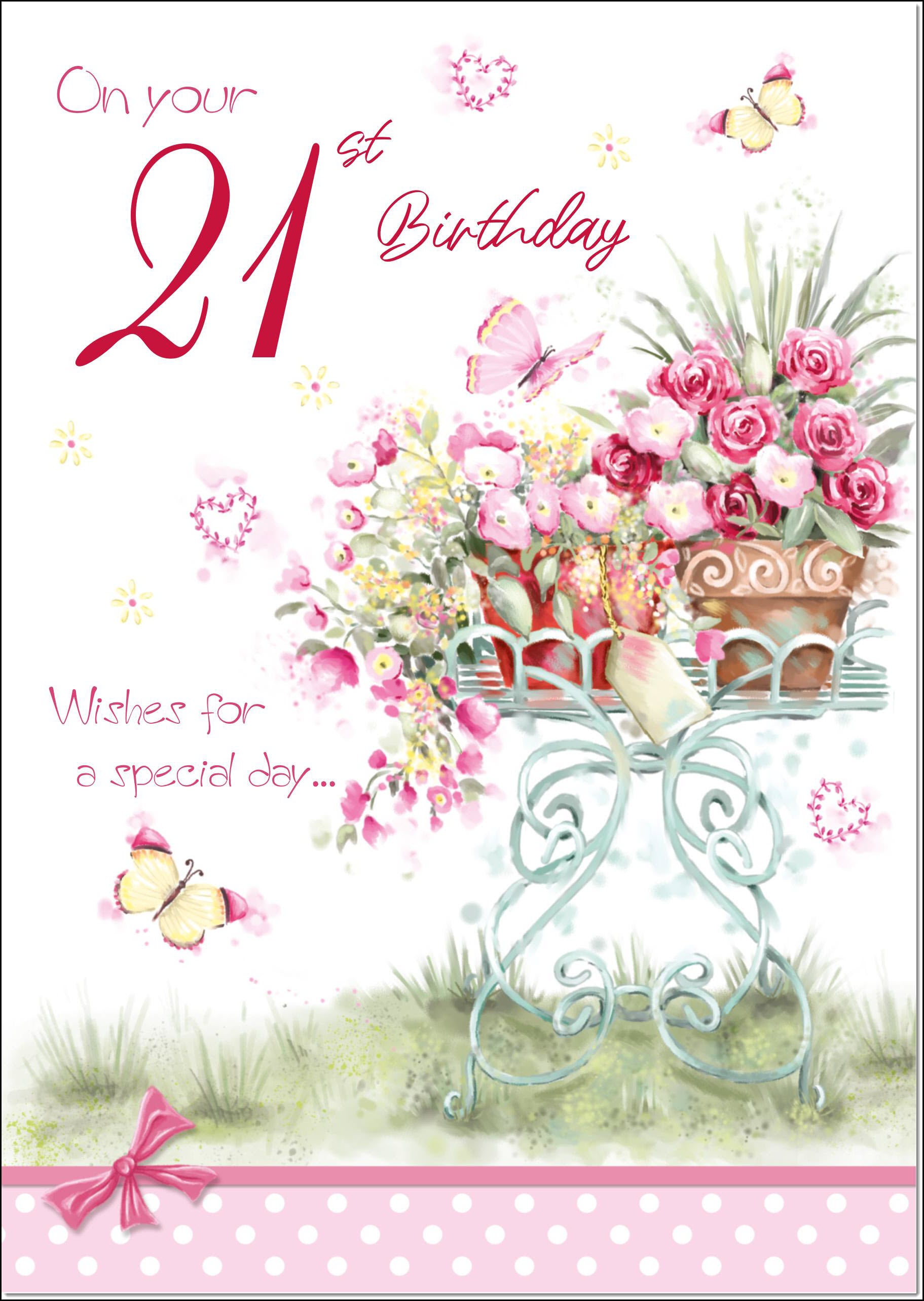 21st Birthday Card Age 21 for Her Pink Floral Plant Pots